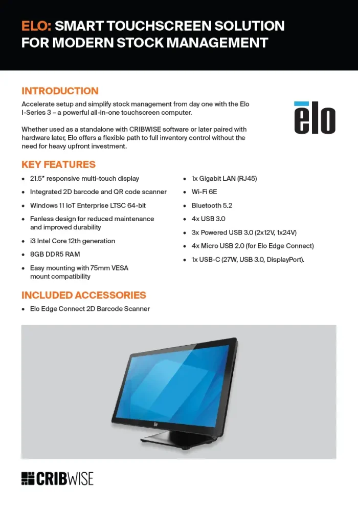 Accelerate setup and simplify stock management from day one with the Elo I-Series 3 – a powerful all-in-one touchscreen computer.