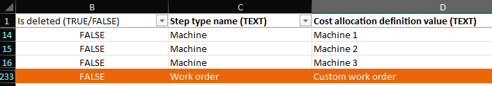 When working with CA hierarchy and values via Excel import and export, references to custom values is always made via value’s name defined in value’s detail – Custom work order in following example.