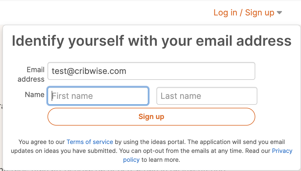 If you don’t have a user, you will need to fill in your name and last name. Youwillneed to confirmyour e-mail to login and seeyour ideas.