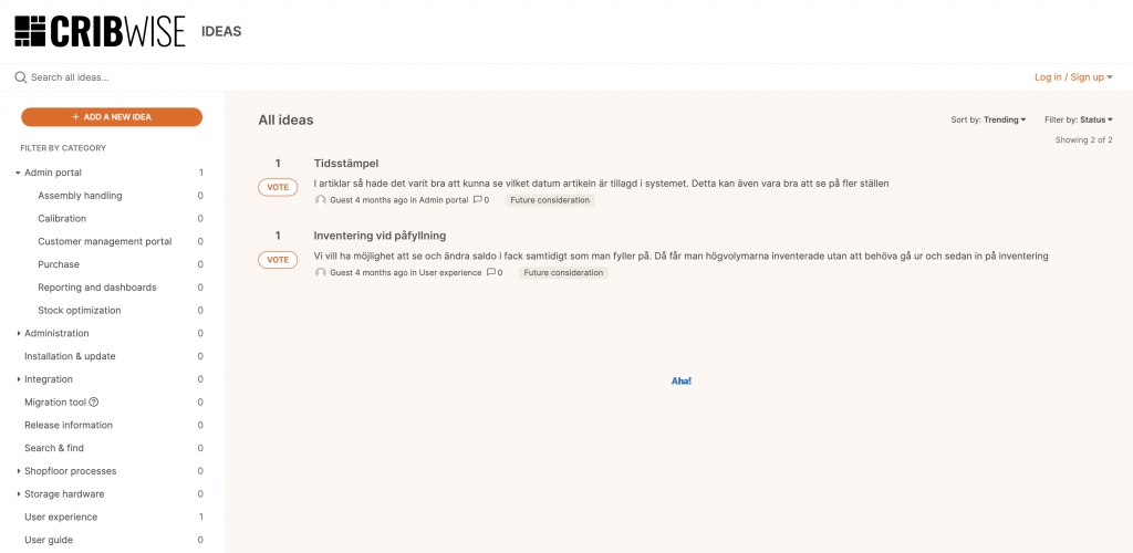 CRIBWISE is integrated with Aha! Ideas portal tool to be more transparent and create a more collaborative environment where more people can elaborate around ideas and features.