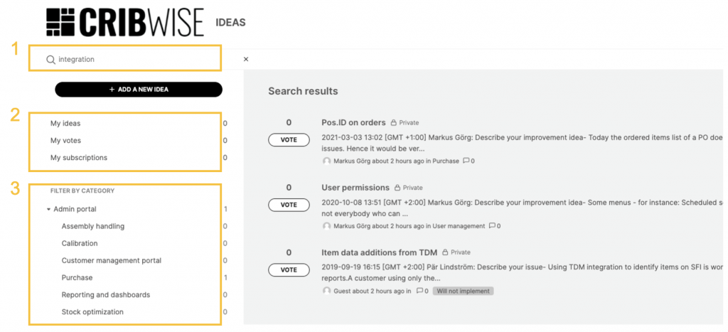 - You can click on any of My ideas, My votes, My subscriptions and see them