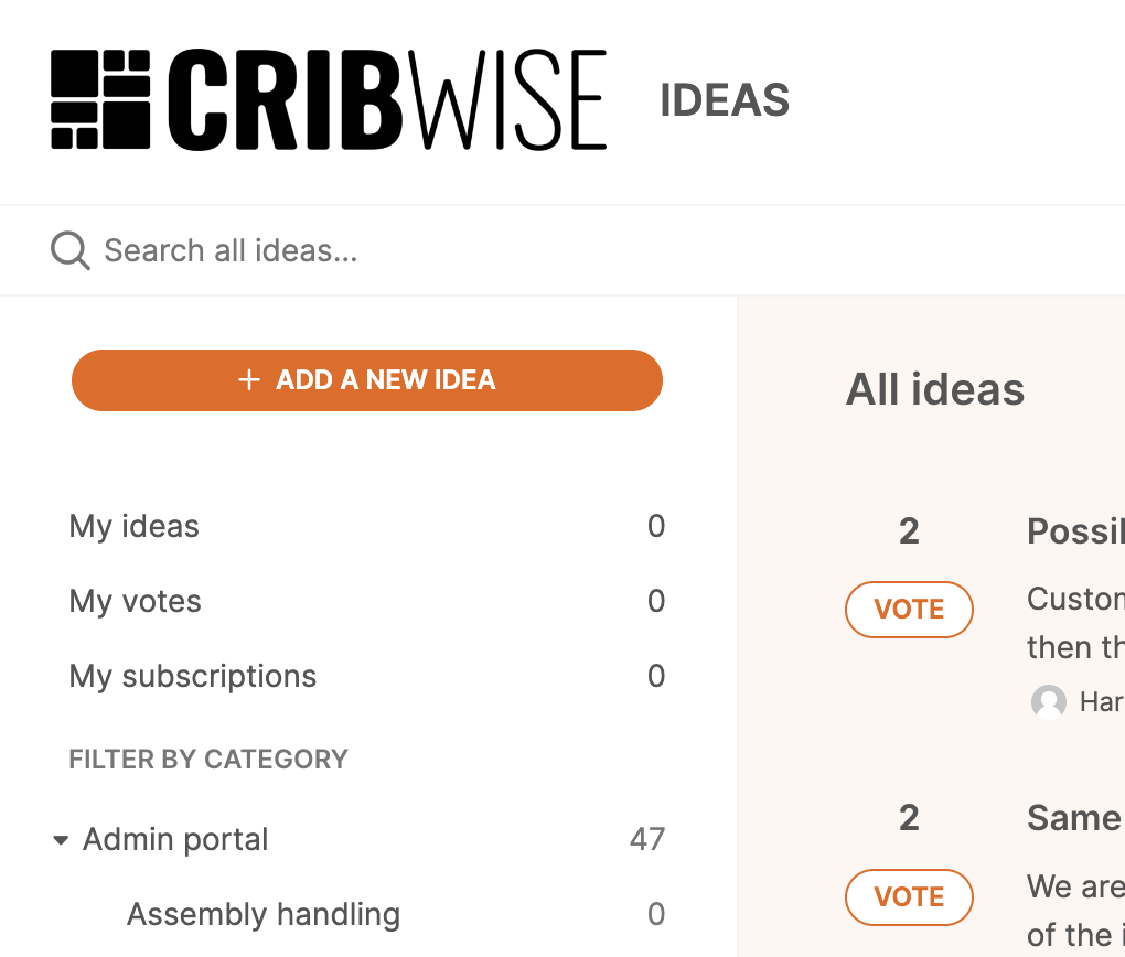 You can access Idea portal by clicking the menu on the top right hand side in Help Center or directly typing the address https://ideas.cribwise.com/