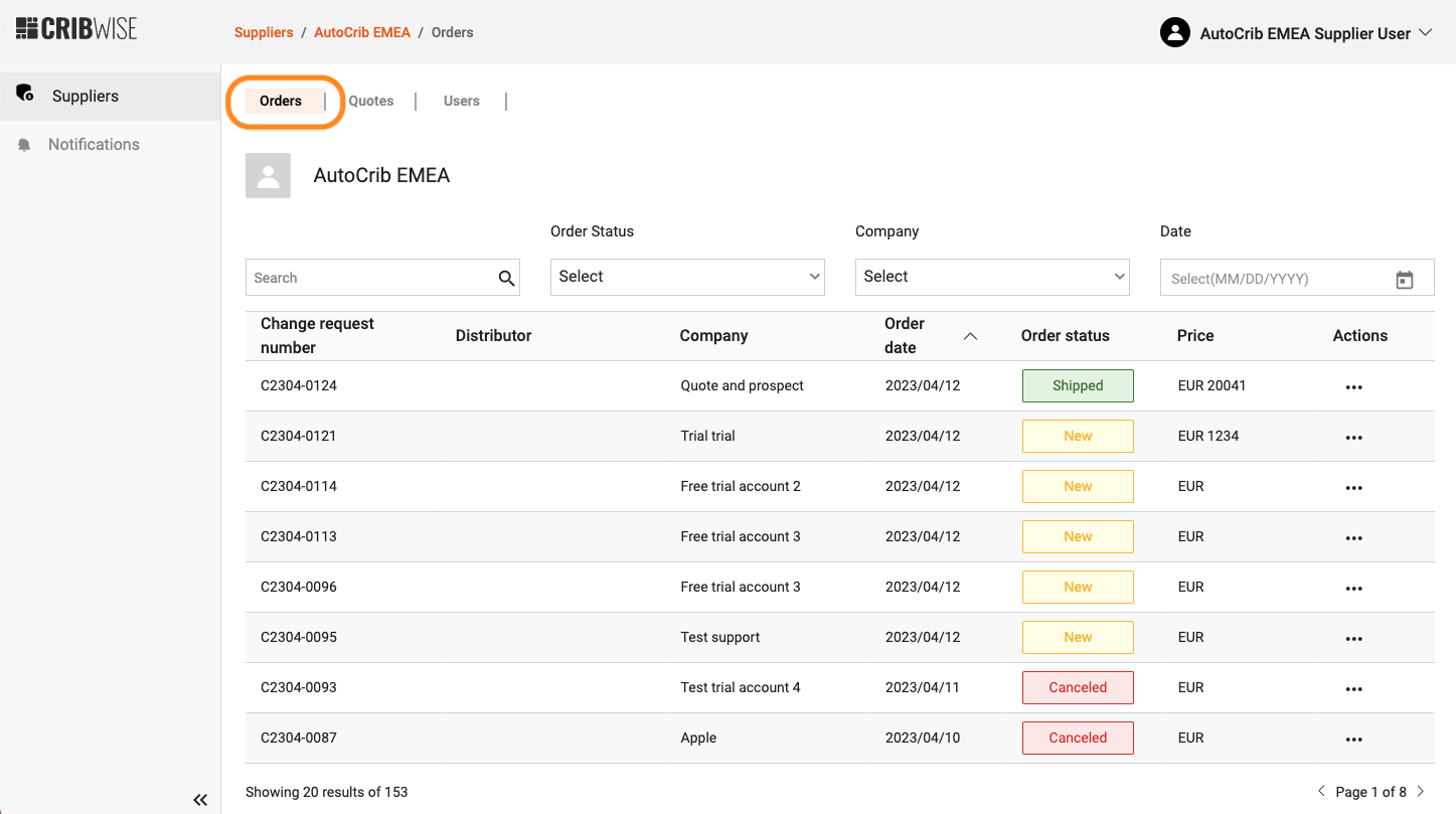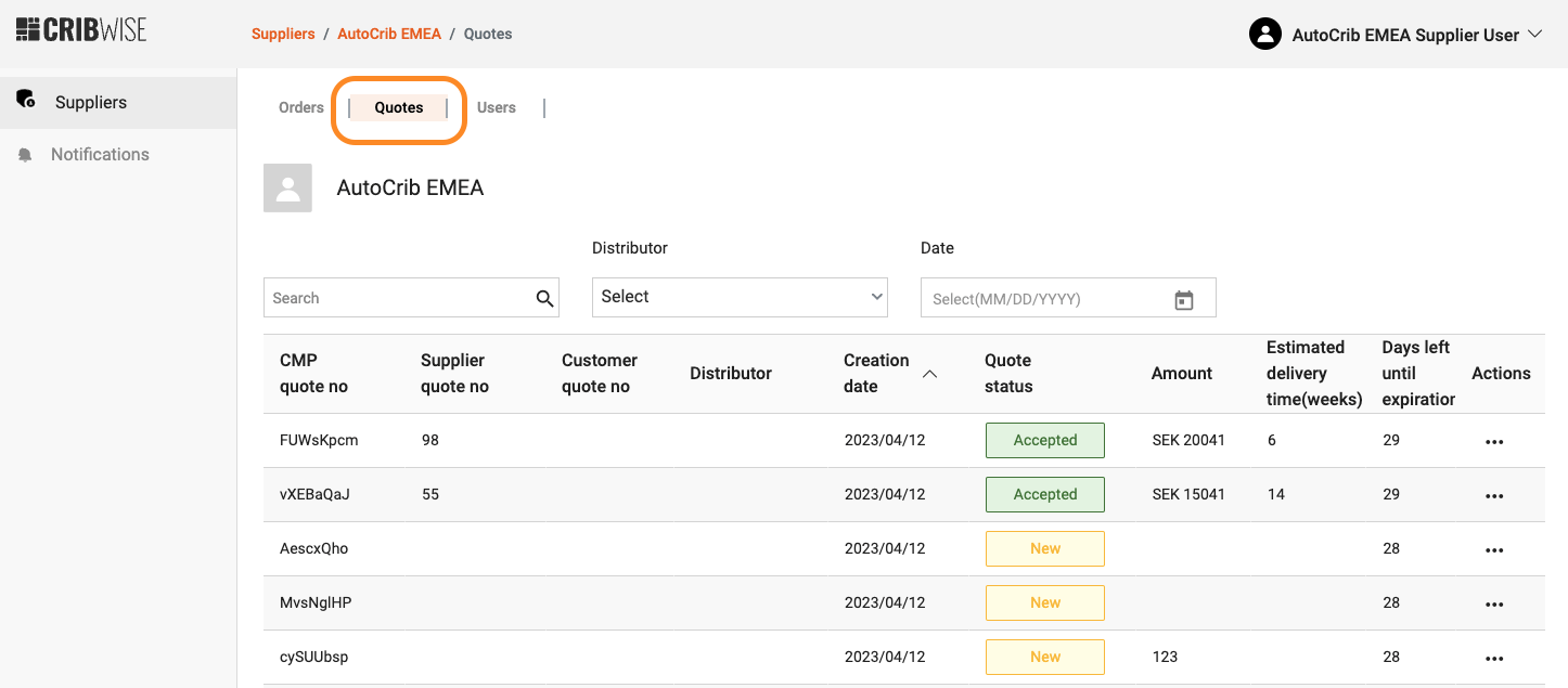 If you have a supplier user account role, you can login to app.cribwise.com to manage quotes requests and hardware orders from distributors.