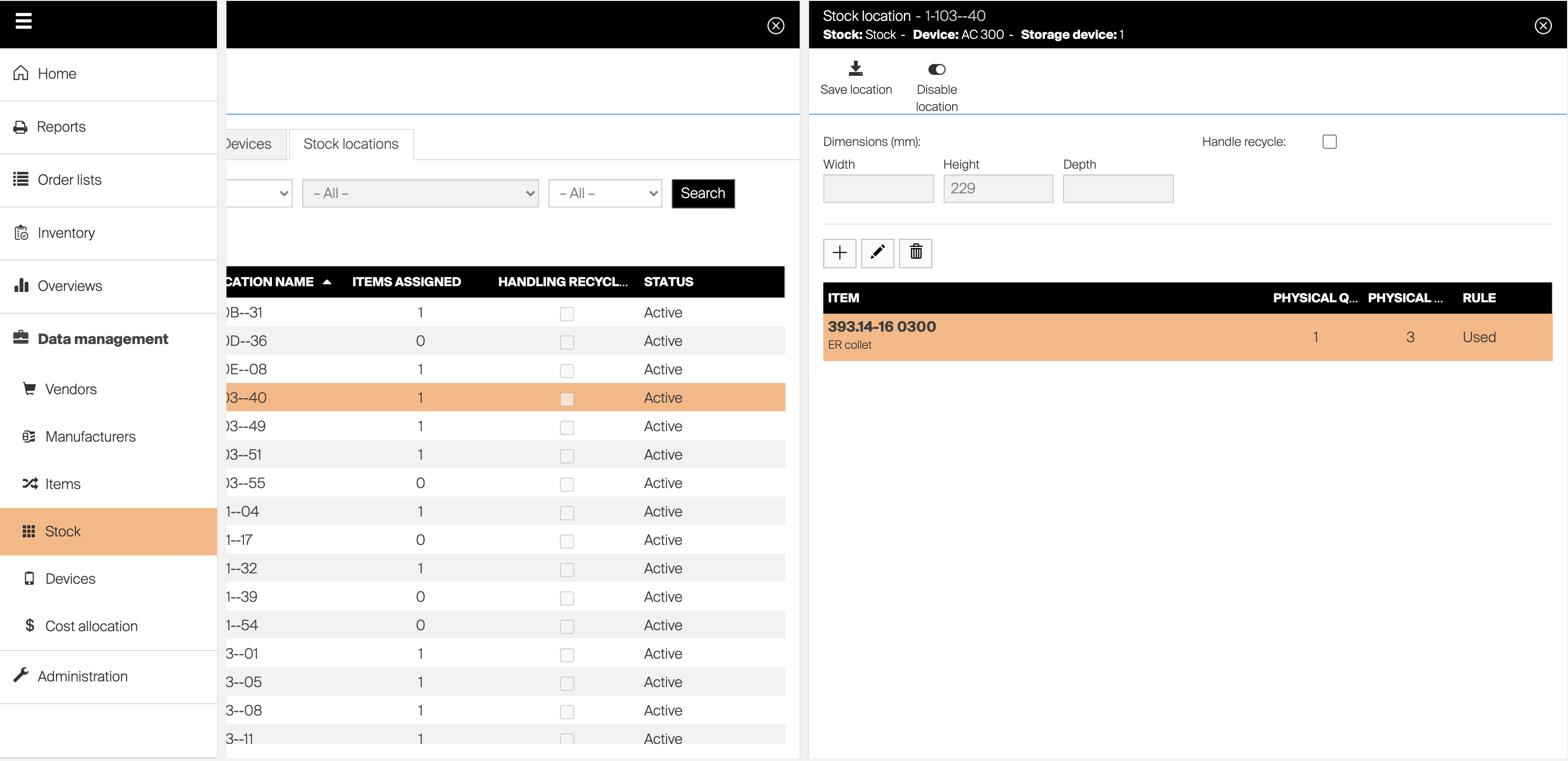 To disable location, navigate to stock location detail (lock device first if device is running in production).