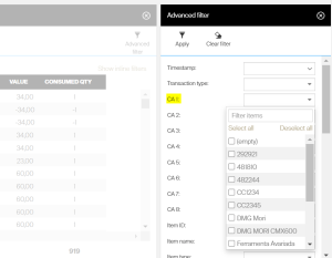 The default fields of the report are present and the Advanced filter can be clicked to add additional fields and filters. In this example the field of cost allocation will be added: