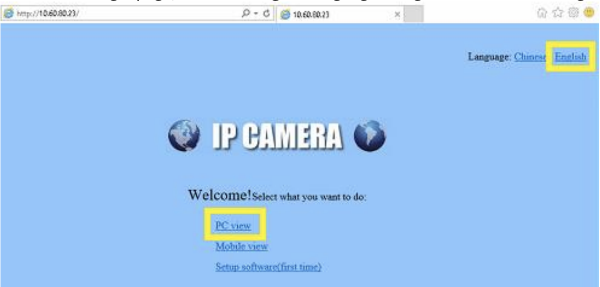 3. Once on the login page, switch to English language and go to PC view to configure the camera