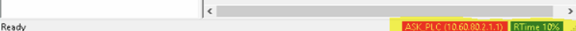 6. Now you should be able to see successful connection to the PLC in the main window status bar similar to following: