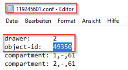 8. Find the right object ID in the config file. In this case it is in the second drawer the 1st and the 2nd lid.