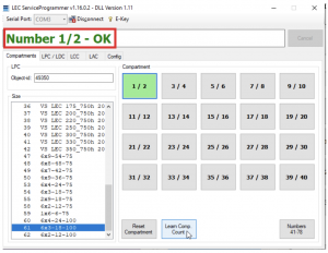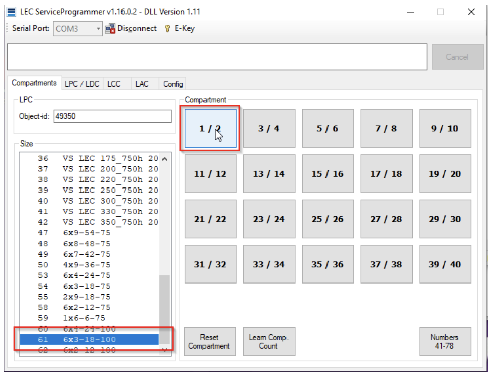 9. Highlight the right compartment type and click the button with the right compartment number. You can see the number of type in the config file. In this example is it the No. 61. Compartment 1 and 2 are of type 61. See above picture. Click on the affected lid.