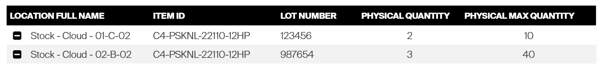 To ensure that lot numbers of non serialized items are not mixed, each location where tracked item is placed (each item-location assignment) can contain only items sharing the same lot number.