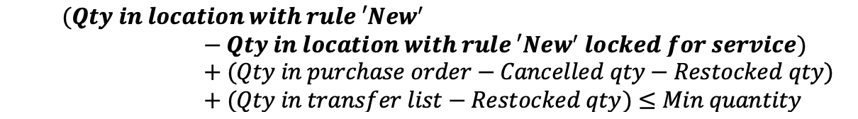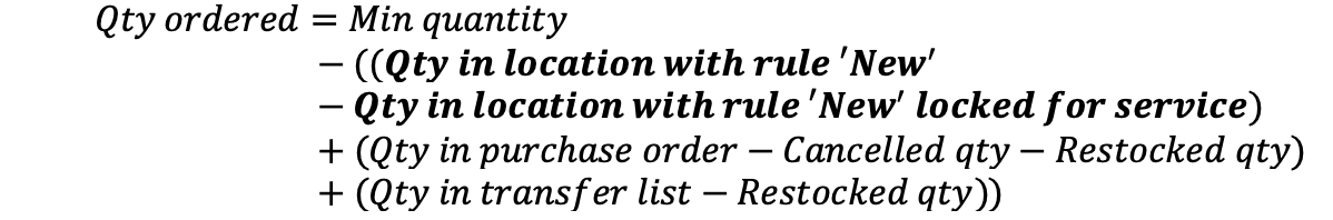 Quantity ordered is to fill up items in condition New to min in stock quantity: