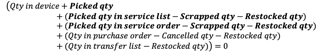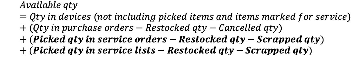 Information related to durable items only marked in bold Purchase and service orders are considered in status Suggested or Active. If this quantity is not available in central stock, system will try to find this item in any device of this central stock and increase its purchase information in this device by quantity demand from transfer lists.