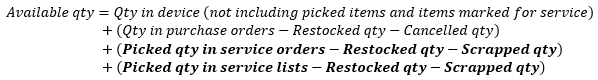 Rule is fulfilled when available quantity of item in device (including picked durable items and items in service list/order)