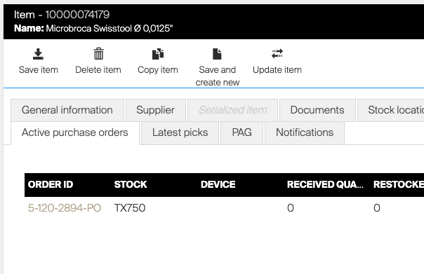 This change also goes from the other way around and you now can open active order from the Item detail tab, Active purchase orders.