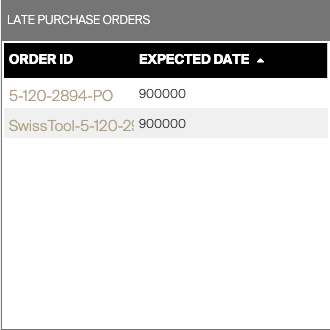 | Order IDs in widget Late purchase orders are also clickable links. After link is pressed correspond order’s detail is shown. | ||