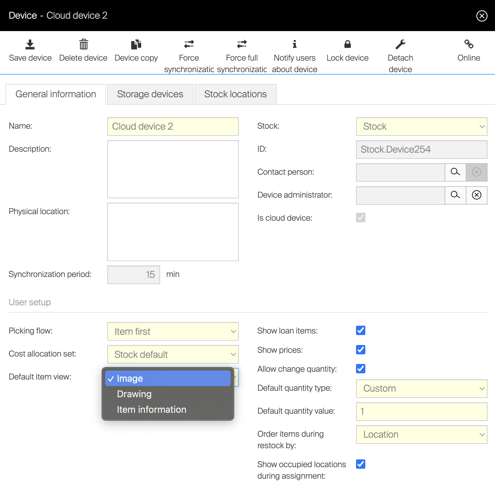 | Set default item information shown during picking and returning | It is now possible to set what item information is shown by default during picking and returning process – item image, drawing or item details. This setting can be specified on device level. | New |