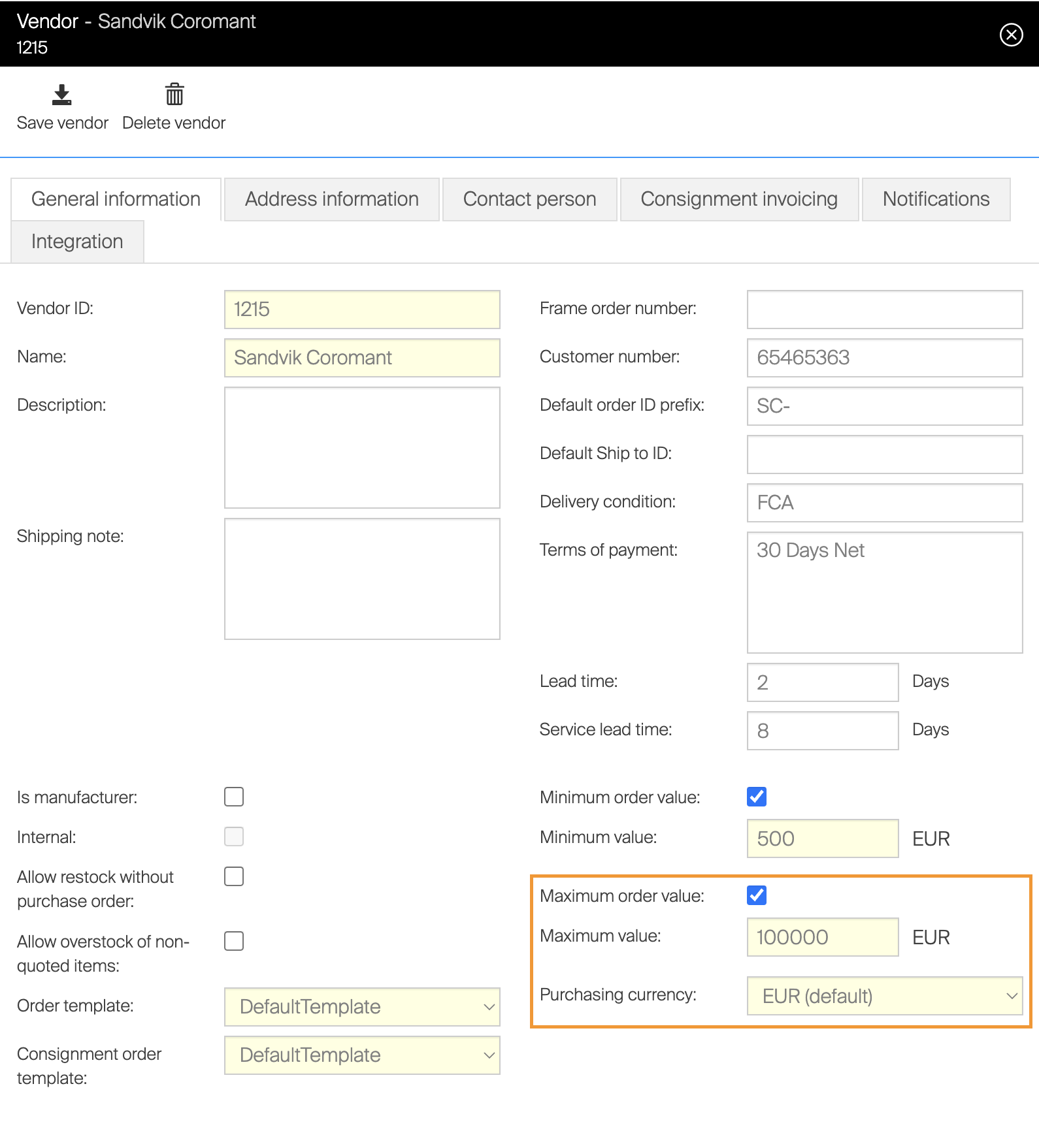 | Maximum order value for vendor | New vendor option has been added to set what is maximum value of an order which can be sent to this vendor. In the same way as the minimum value, this setting can block automatic sending of order in case the limit is violated. | New |