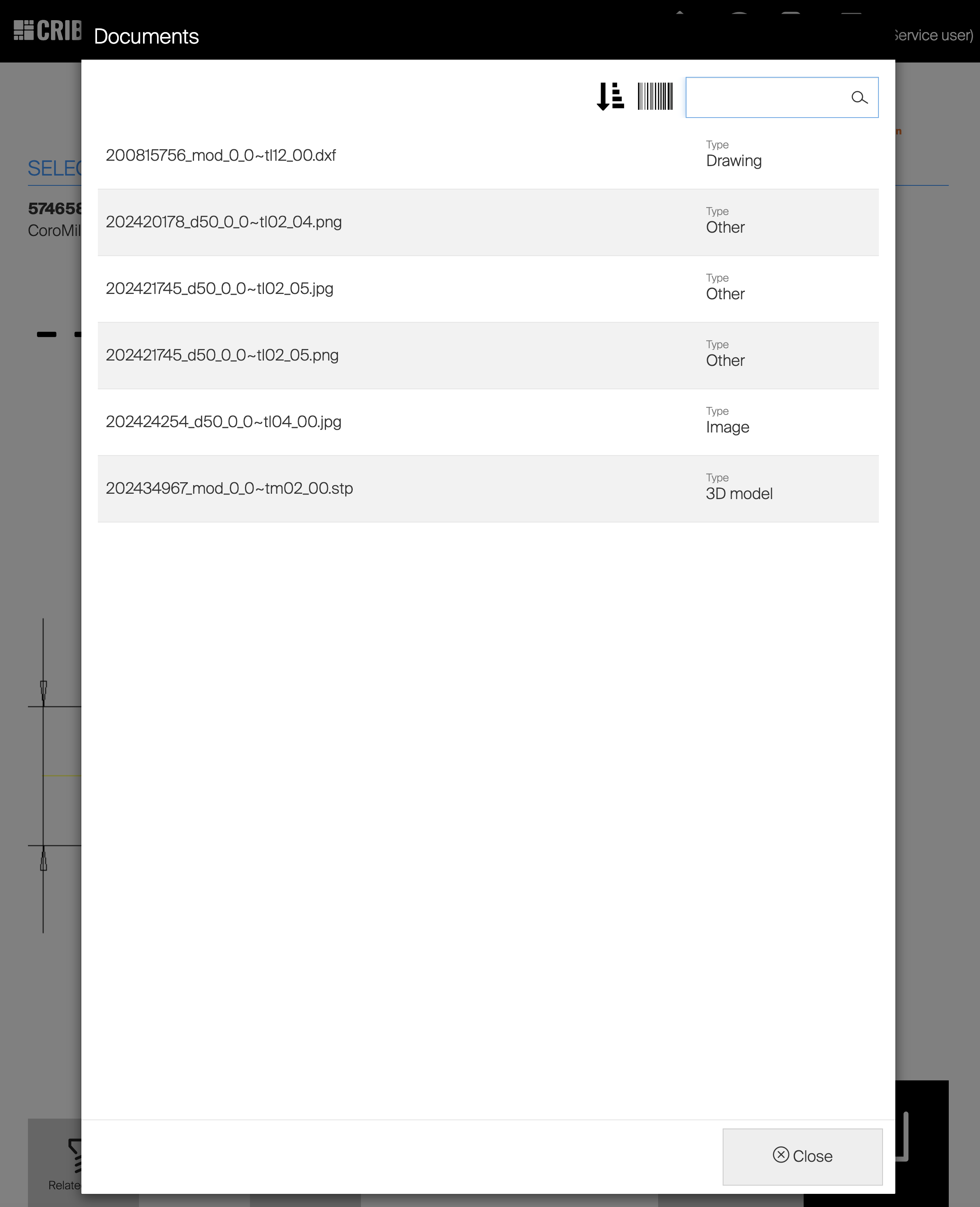 By clicking the document icon on SFI, a list of all available item documents are shown to the user. Remember that the option “Show on SFI” must be selected. These documents can then be opened in a full screen window by choosing wished row.
