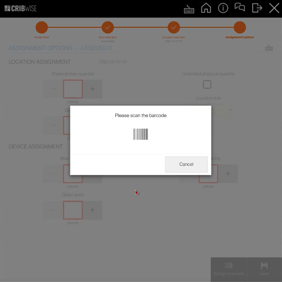 | Add barcode during assignment of item | When item has no barcode, it is possible to scan and add the barcode during assignment of this item to location. | New |