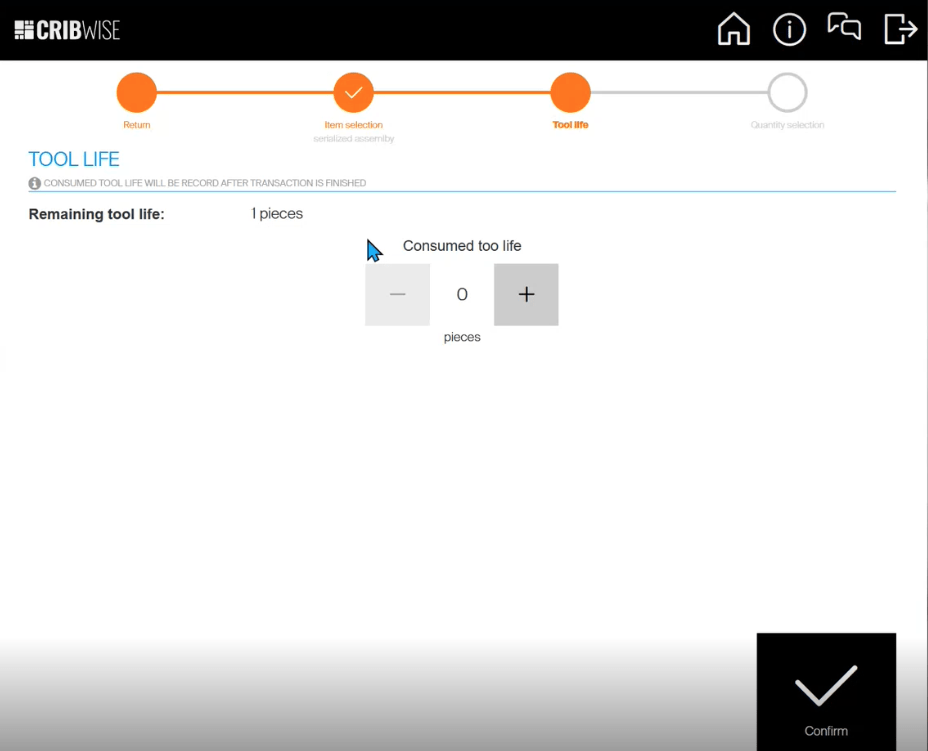 When the item has reach tool life remaining to zero the instance status will be automatically set to “For Service” and not be able to pick for use.