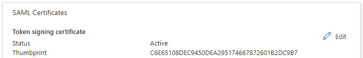 Save the configuration. In SAML Certificates section, locate and note certificate Thumbprint.