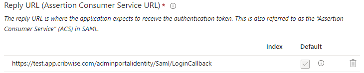 Set Reply Url (Assertion Consumer Service URL) to value of Login consumer URL, taken from Admin Portal.