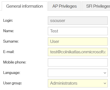 Once SSO is activated, navigating to address of Admin Portal will redirect user to login screen of the external identity provider. User must successfully proceed the authentication flow with the external provider (including multi factor authentication, if such is required). Once user is successfully authenticated, it is redirected to Admin Portal for authorization. To successfully pass authorization in Admin Portal, user must exist in the Admin Portal with email address matching the authenticated user and it must have privilege to access the Admin Portal (must belongs to user group with role AP users). While user is logged in Admin Portal, all restrictions set for this user in Admin Portal’s user and user group management will be applied. While the SSO is active, it is not possible to login to Admin Portal using only username and password defined in Admin Portal’s user management. SSO is utilized for login to Admin Portal only. Login to Shop Floor Interface, users defined in the Admin Portal must be used (with role SFI users), authentication must be performed via login name and password or via external accessory (RFID card, barcode, Coges key). It is still possible to login via account administrator (from Customer Management Portal) even when SSO is active. To prevent login for these, change access control settings.