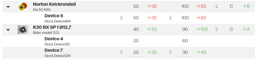 You can select one row and press view detail (Need to expand the item and select device level) to see individual item’s usage, stock status and proposed changes, including a graph of current and projected levels.